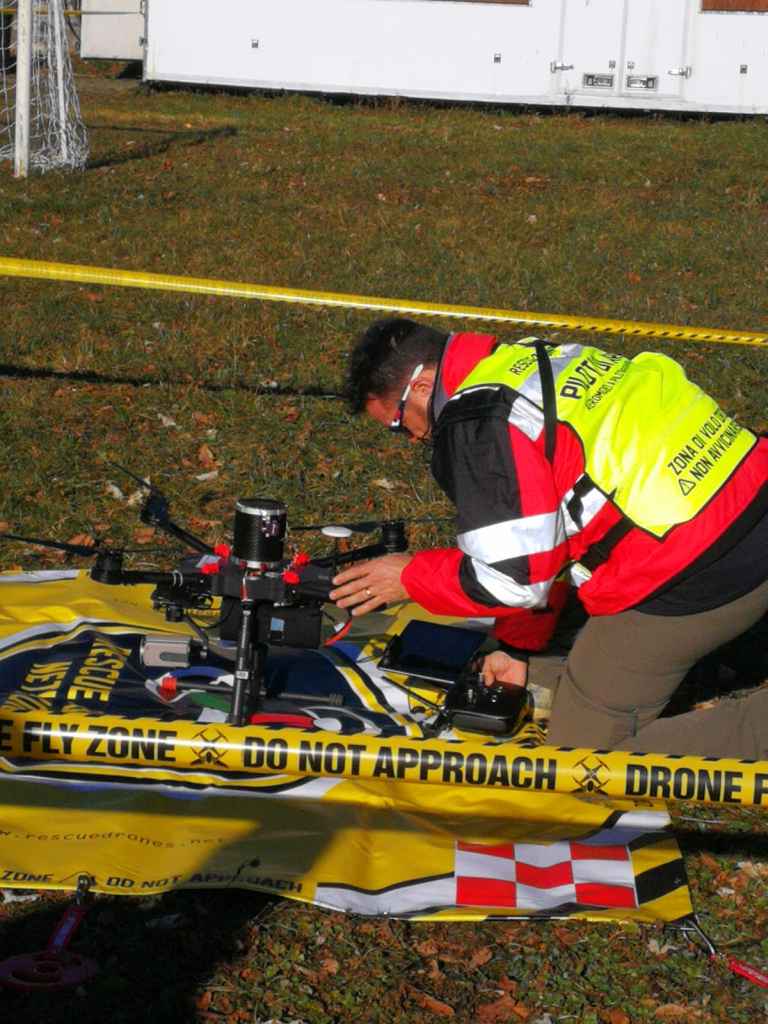 Grande spazio ai test con le termocamere a bordo dei droni che garantiscono la quasi certezza assoluta di individuare una persona in vita che si trovi nell’area scansionata.