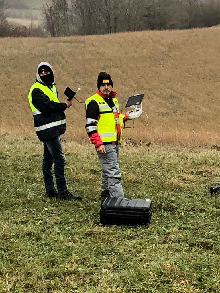 Pianificata e realizzata un’attività di rilievo aerofotogrammetrico: definita l’area di 10 ettari da scansionare nella località Bolderoni, in soli 40 minuti si è riusciti a fare i voli ed elaborare le immagini successive per mettere a disposizione del Sindaco un’immagine fotografica unica di tutta l’area nonché un modello tridimensionale della frazione indagata, navigabile su computer per consentire a chi deve organizzare i soccorsi di avere la dimensione dell’area interessata dall’evento ed informazioni sulla gravità dei danni subiti e sulle vie di accesso disponibili. Grande collaborazione della popolazione presente che, con l’aiuto dei volontari dell’Associazione I BARBARI ha accettato di non uscire per qualche minuto per garantire la sicurezza delle operazioni.