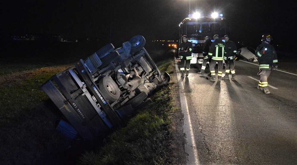 Auto contro camion, scontro lungo la famigerata Provinciale 587R, nel tratto che da Chiavenna Landi conduce a Cortemaggiore. Tratto tristemente famoso per l’alto numero di incidenti stradali che si sono verificati negli anni e anche negli ultimi mesi. I fatti sono accaduti intorno alle 19 di questa sera, venerdì 17 marzo. La dinamica è ancora al vaglio della polizia stradale che ha effettuato i rilievi, certo è che una Ypsilon e un furgone sono entrati in collisione ed entrambi i mezzi, dopo l’impatto, hanno terminato la propria corsa nei canali che costeggiano la carreggiata. A destare maggiori preoccupazioni il conducente del tir che di fatto si è ribaltato (VEDI FOTO): l’uomo, che viaggiava solo, è infatti rimasto incastrato nell’abitacolo e i vigili del fuoco hanno dovuto lavorare duramente per estrarlo dalle lamiere e affidarlo alle cure del 118, intervenuto sul luogo del sinistro con un’auto infermieristica, un’automedica e due ambulanze. Dopo le prime cure prestate sul posto l’autotrasportatore è stato condotto al pronto soccorso, le sue condizioni sono gravi. Al volante della Ypsilon invece era una ragazza, anche lei condotta al pronto soccorso di Piacenza ma con ferite più lievi. La strada è rimasta chiusa al traffico per permettere i soccorsi e i rilievi affidati, come detto, alla polizia stradale.