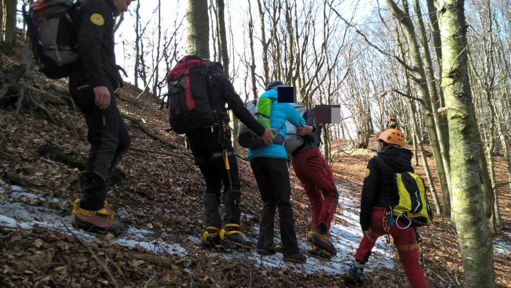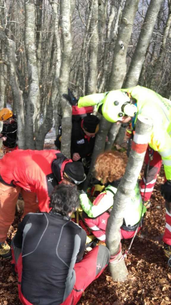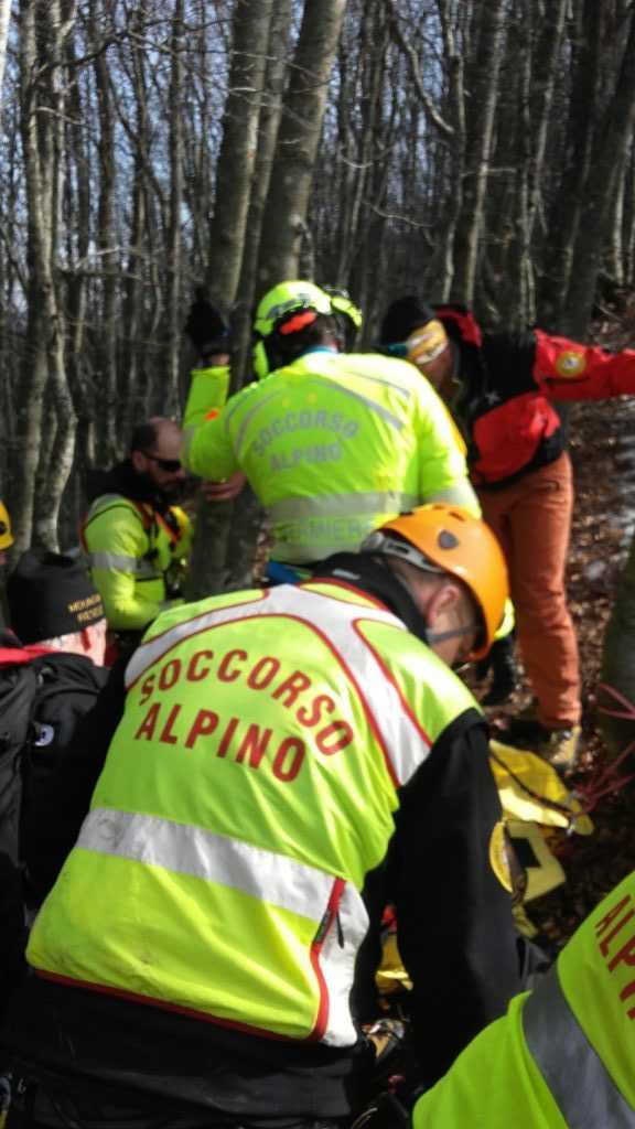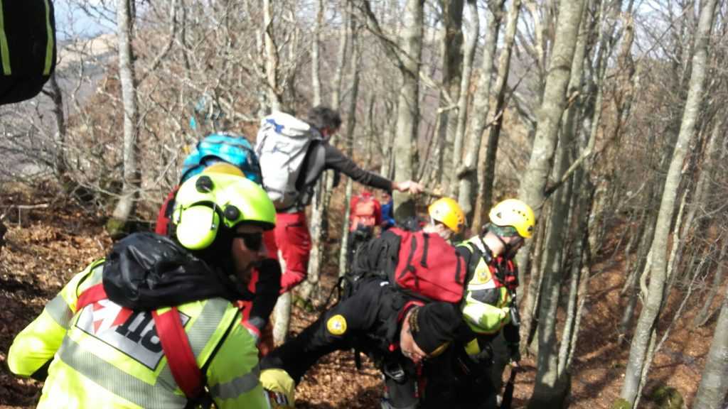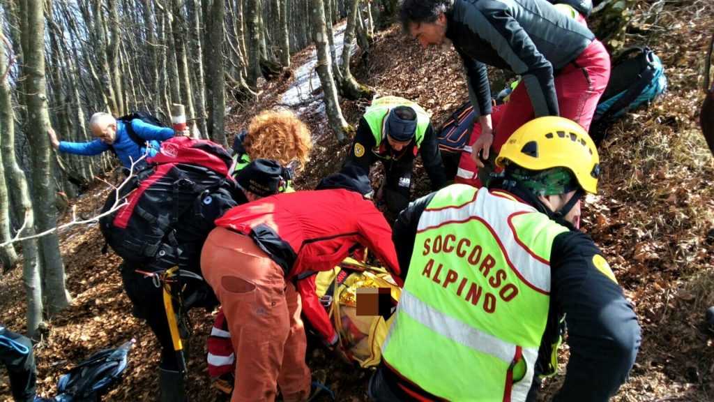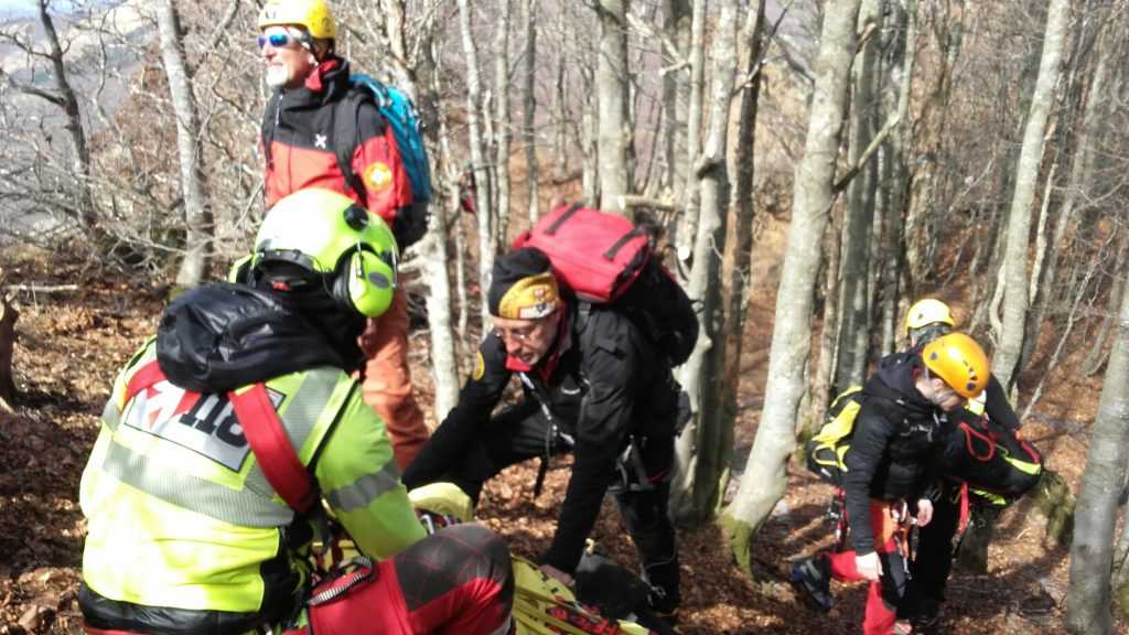 Nella tarda mattinata di domenica 12 marzo, i tecnici del Soccorso Alpino Emilia Romagna sono stati chiamati ad un difficile intervento sanitario sull’appennino Piacentino, nella località al confine con la provincia di Genova nota come Valle Tribolata, nel versante di guglie e speroni ofiolitici della Ciappa Liscia, nel comune di Ferriere . Un escursionista 70enne proveniente dalla provincia di Lodi, stava infatti compiendo una gita CAI sul sentiero di crinale che sovrasta la parete della Ciappa, insieme ad altri cinque compagni, anch’essi lodigiani; in un tratto a mezza costa con una presenza di ghiaccio particolarmente duro e coperto dalle foglie che il vento aveva spostato, l’uomo è scivolato, cadendo ed accusando un fortissimo dolore al bacino e ad un arto inferiore. Subito i compagni di escursione, resisi conto della gravità della situazione, hanno avvisato il 118 telefonicamente; la Centrale Operativa ha così immediatamente attivato una squadra territoriale del Soccorso Alpino della Stazione “Monte Alfeo” di Piacenza e una, proveniente dalla vicina Valtaro, della Stazione “Monte Orsaro” di Parma. Mentre le squadre territoriali iniziavano l’avvicinamento al ferito dapprima su mezzi fuoristrada e poi a piedi, veniva attivato anche l’elisoccorso di Pavullo nel Frignano, con a bordo personale tecnico e sanitario del Soccorso Alpino. Arrivati sul posto dopo un difficile avvicinamento con piccozza e ramponi, i tecnici del SAER hanno messo in sicurezza l’uomo e atteso lo sbarco del personale dell’elisoccorso. Dopo aver stabilizzato ed imbarellato lo sfortunato escursionista ed aver tagliato alcuni alberi per consentire un più agevole recupero tramite verricello, i tecnici hanno imbarcato sull’elicottero l’uomo, con destinazione Ospedale Maggiore di Parma, con sospette fratture al femore ed al bacino.