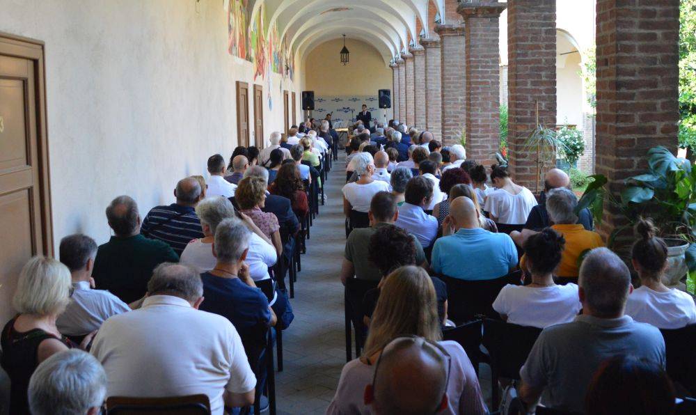 “La Banca di Piacenza ha donato ai Frati Francescani l’intero materiale della ristrutturazione della Salita che sarà sempre utilizzabile per le visite. In accordo con i frati la apriremo in occasioni di straordinaria importanza: succederà già ad ottobre, in concomitanza con il Geofluid che porterà a Piacenza circa 20mila visitatori. Stessa cosa la Banca ha fatto per i lavori realizzati nelle chiese di Cortemaggiore e nella Cattedrale di Cremona”. L’annuncio è stato fatto dal presidente del Comitato esecutivo dell’Istituto di credito di via Mazzini Corrado Sforza Fogliani, nel corso della manifestazione di chiusura della Salita al Pordenone (salve le aperture serali dei due prossimi venerdì di luglio, con ingresso gratuito) che si è svolta nel chiostro del Convento di Santa Maria di Campagna, stracolmo nonostante la concomitanza con la finale dei Mondiali di calcio e nonostante la giornata particolarmente afosa.