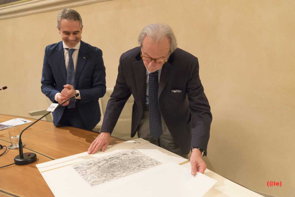 Al suo arrivo il direttore di Libero era stato accolto dal presidente del Comitato esecutivo della Banca di Piacenza Corrado Sforza Fogliani che aveva accompagnato l’ospite – che conosce da tempo, avendo collaborato con lui in molti giornali di Feltri – in una breve visita alla Sala Arisi e alle mostre del Genovesino e dei Nuovi Ghittoni, in corso a Palazzo Galli.