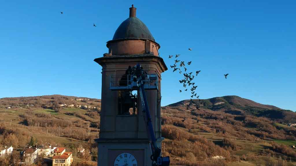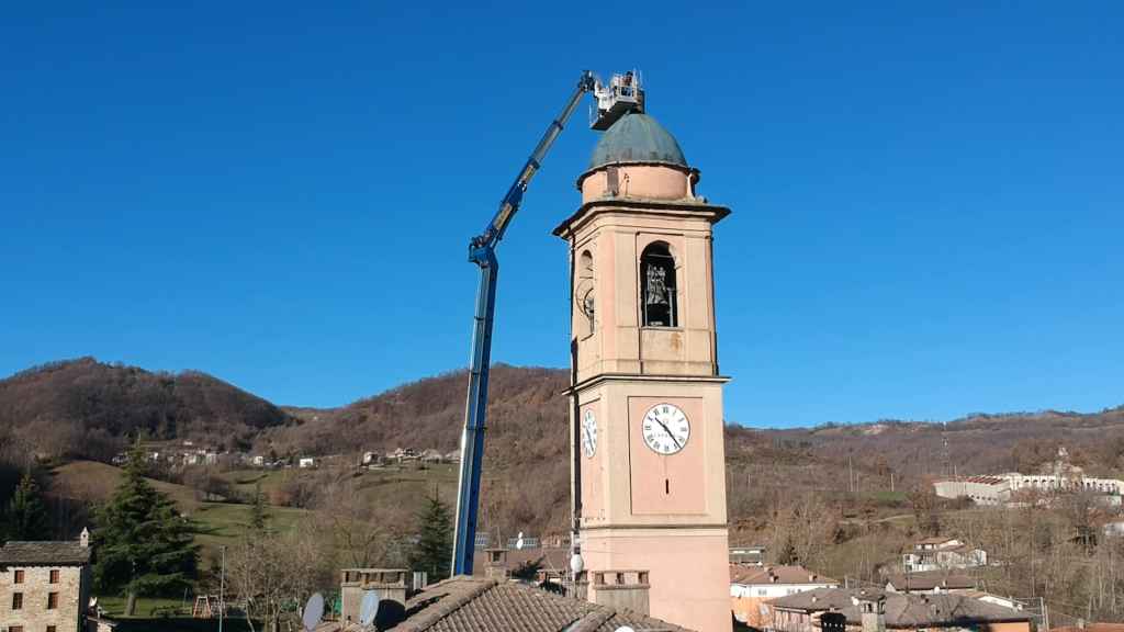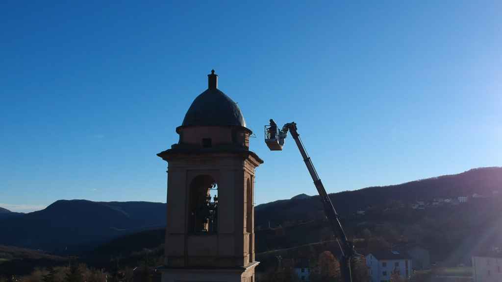 Una volta analizzata la situazione, la parrocchia ha potuto commissionare i lavori di ripristino. L’intervento è stato effettuato il 10 dicembre, grazie all’impiego di una piattaforma aerea in grado di raggiungere i quasi 40 metri dal suolo.