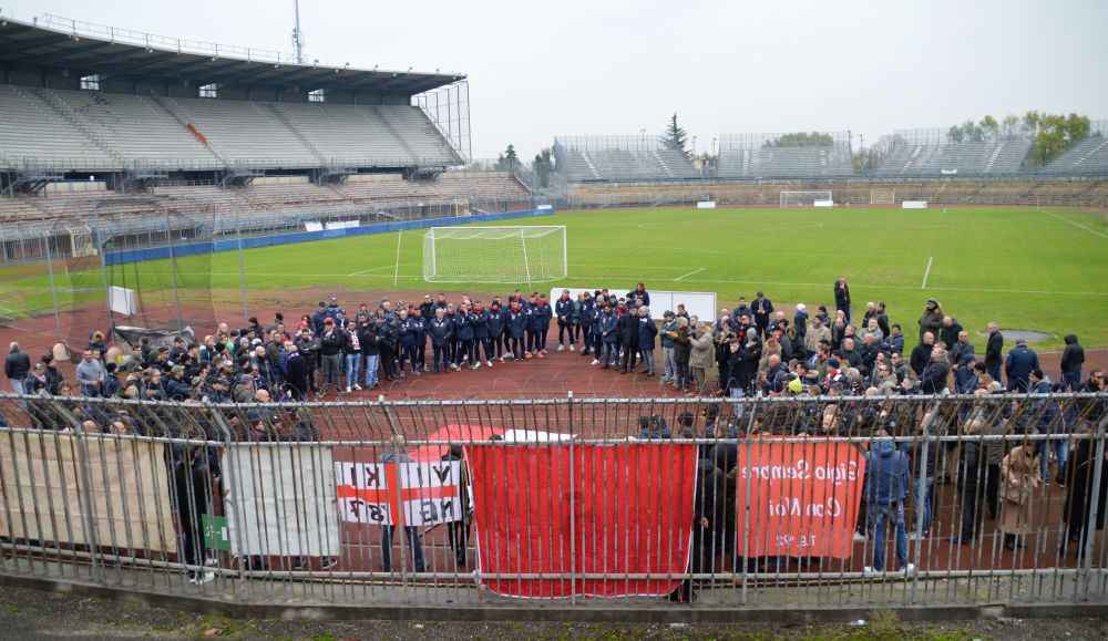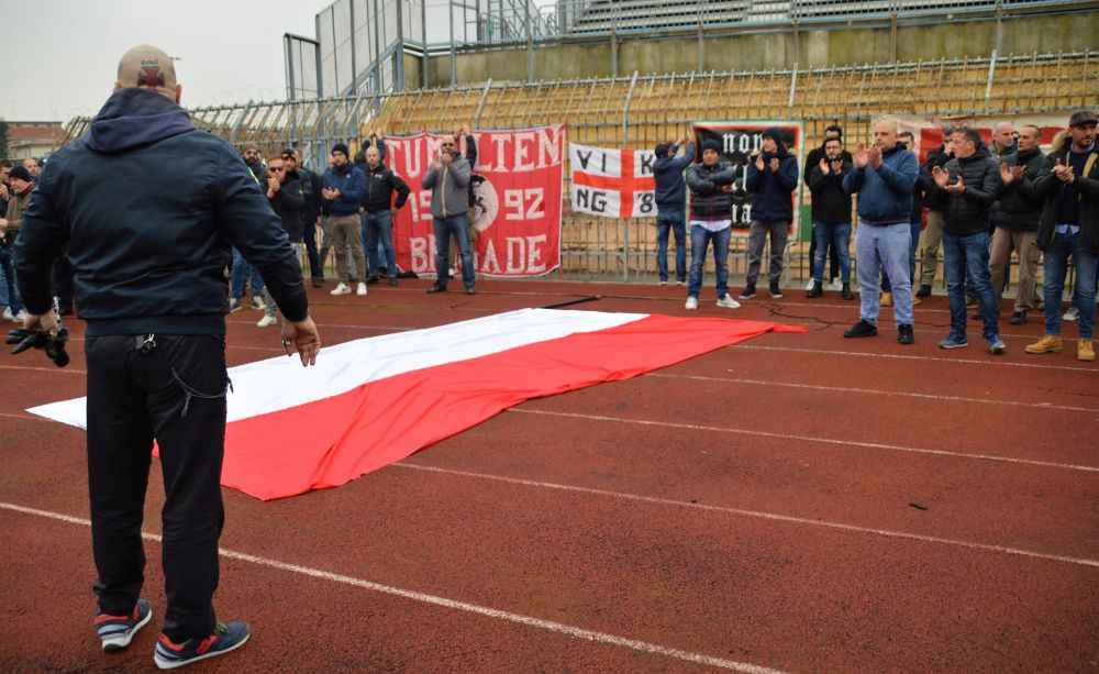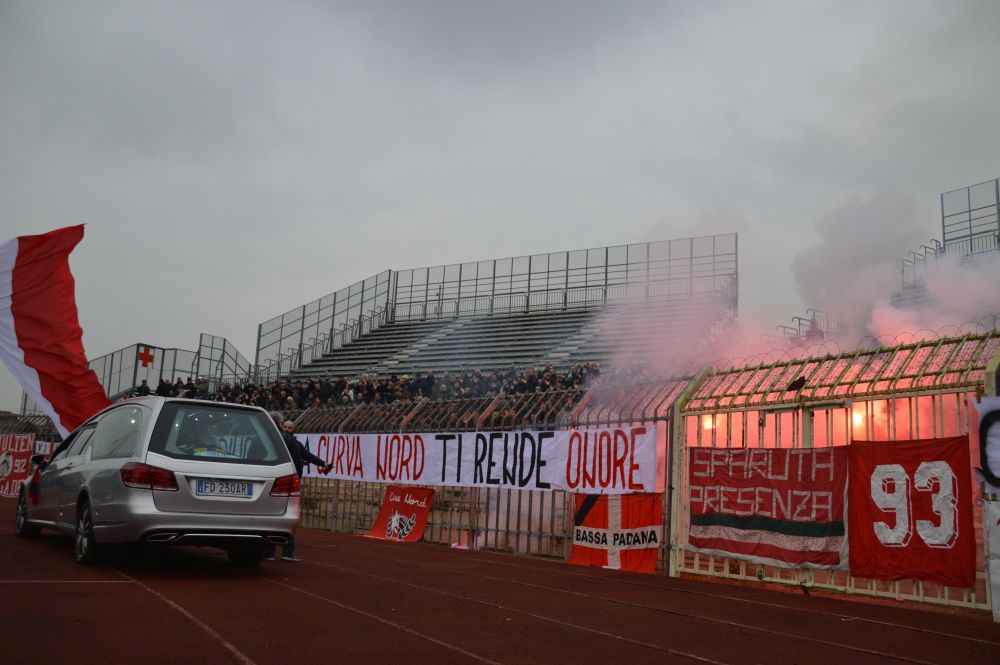 Erano presenti anche squadra e società, in testa Luca Matteassi, Marco Scianò, Stefano Gatti, Arnaldo Franzini. Più volte dirigenza, giocatori e allenatore hanno sottolineato l’importanza di avere una tifoseria come quella biancorossa, in grado di tenere accesa la fiammella anche nei periodi più oscuri. Eccellenza, serie D, Lega Pro. A gente come Marco le categorie non sono mai interessate. C’erano solo una città e una squadra. Punto. E la domenica si andava allo stadio, non al centro commerciale.