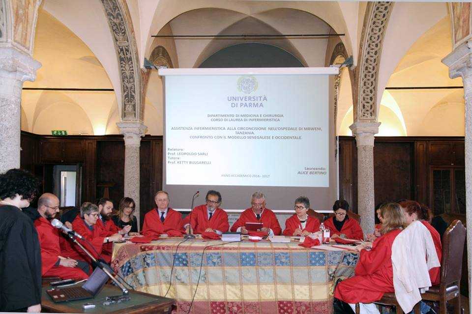 La commissione era formata da rappresentanti del MIUR – Ministero dell’Istruzione, dell’Università e della Ricerca e del Ministero della Salute e da docenti del corso, provenienti sia da Parma che da Piacenza. Alla cerimonia di discussione delle tesi era presente la Direzione Generale dell’Azienda Usl di Piacenza, l’Ordine delle Professioni Infermieristiche di Piacenza e alcuni rappresentanti del corso di studio in Infermieristica dell’Università di Parma, tra cui il Presidente Paolo Del Rio.