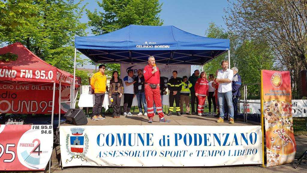Il Sindaco ha voluto ricordare l’impegno profuso dai Vigili del Fuoco di Piacenza, rappresentati dall’Ing. Paolo Baldini e il gruppo Vega della Protezione Civile Bruno Puddu durante i catastrofici eventi avvenuti nelle zone terremotate del centro Italia. A ringraziamento il Sindaco ha consegnato una targa. Presenti alla cerimonia il Presidente dalla Provincia Francesco Rolleri, il segretario Nazionale FIASP Remo Martini, Pietro Perotti organizzatore dalla Placentia Half Marathon, rappresentanti dell’amministrazione comunale e delle associazioni di Podenzano.