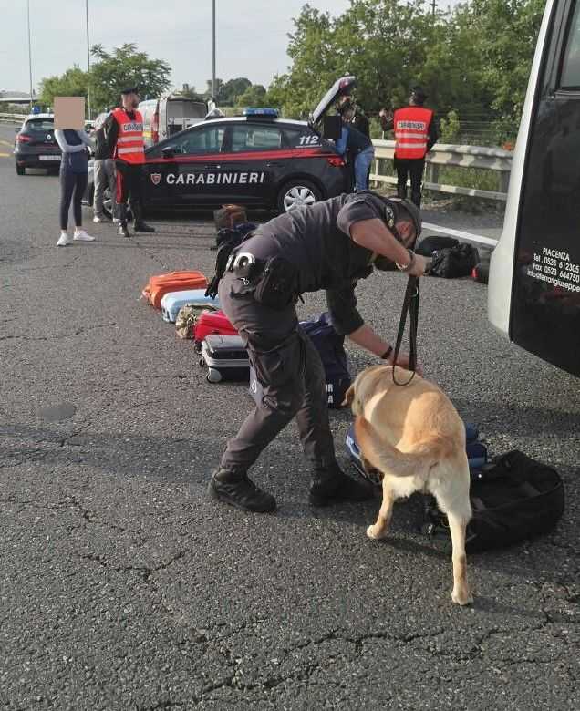 I controlli hanno interessato anche un altro pullman di studenti in partenza per la gita, studenti delle scuole medie, ma in questo caso nulla è stato trovato. Al posto di blocco hanno partecipato tre pattuglie dei carabinieri dei Radiomobile, tre pattuglie di Piacenza Principale e, come detto, le unità cinofile della guardia di finanza.