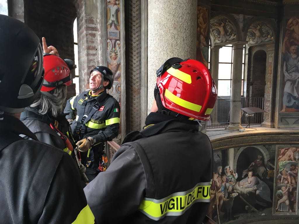La basilica di Santa Maria di Campagna è stata negli scorsi giorni oggetto di un sopralluogo di sicurezza da parte di uno speciale nucleo di Vigili del fuoco denominato S.A.F. (speleo alpino fluviale) che hanno garantito la sicurezza della cupola con la predisposizione di speciali “funi salvavita ed altri interventi vari”. Ora però, sempre Vigili della S.A.F. hanno effettuato prove di soccorso che hanno interessato il tetto della basilica.  Il piano di intervento per prestare aiuto a chi necessita di cure mediche, prevede l’utilizzo di una barella, necessaria per trasportare persone che abbiano avuto malori, magari da vertigini.