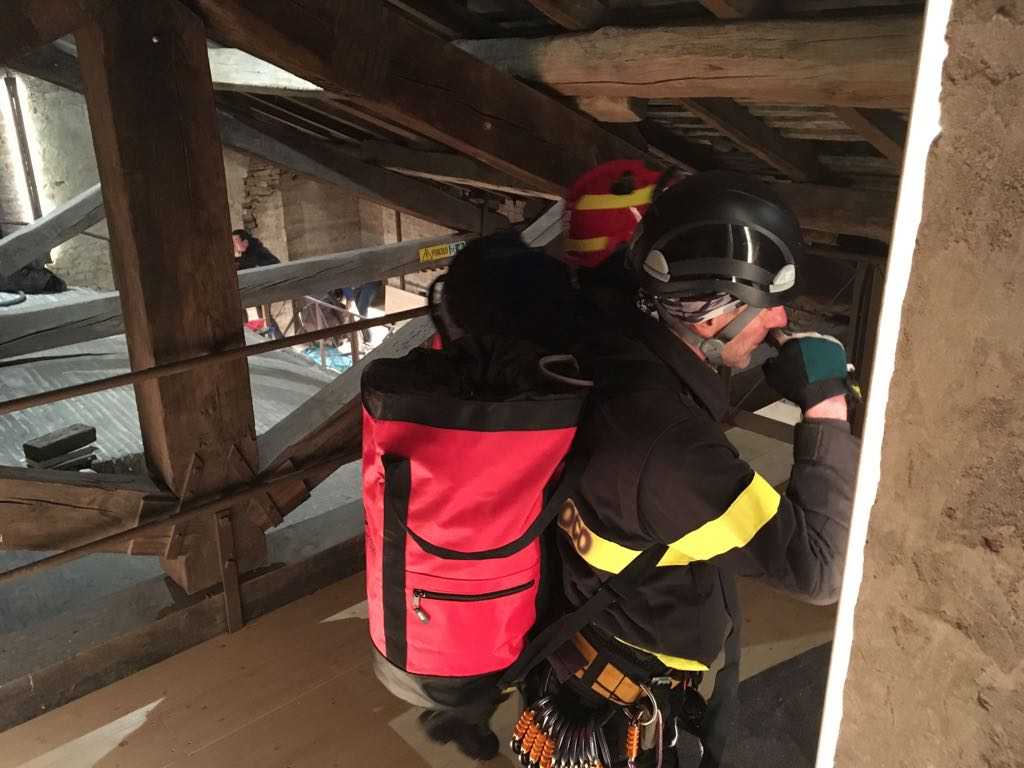 Il Barellato può essere calato in sicurezza dalle finestre della chiesa, con il supporto di un’autoscala che consentirà di trasportarlo a terra, passando da una copertura laterale che affaccia su via Campagna.
