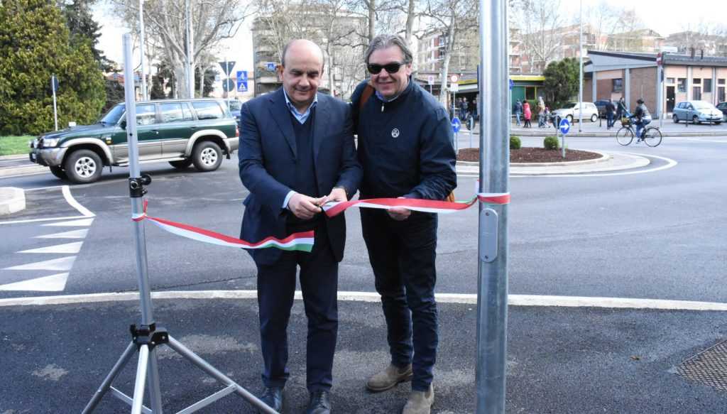 Subito dopo il taglio del nastro in viale Dante, il sindaco Paolo Dosi, accompagnato dall’assessore Giorgio Cisini, si è spostato all’incrocio tra via Alberici e via IV Novembre dove è stata inaugurata la nuova rotatoria. Insieme alla giunta comunale anche i commercianti di viale Dante rappresentati da Alessandra Tampellini che ha espresso soddisfazione per le novità apportate alla zona.