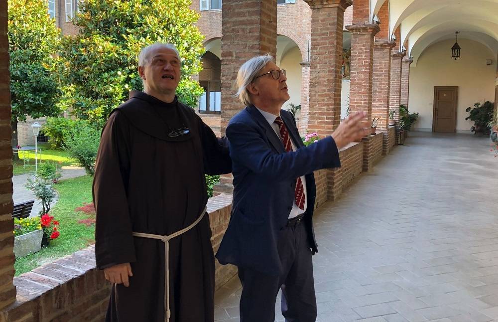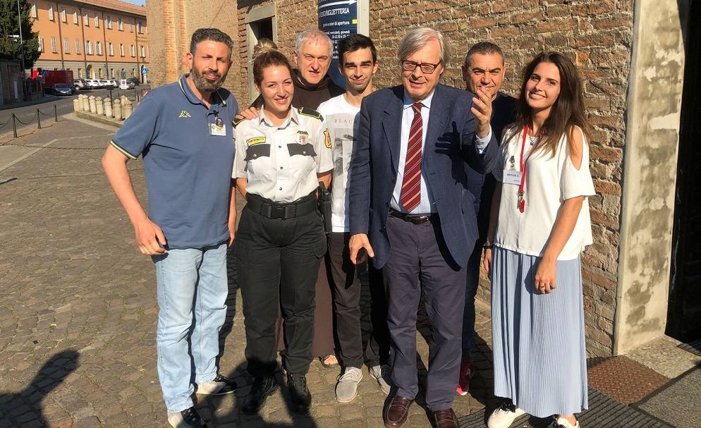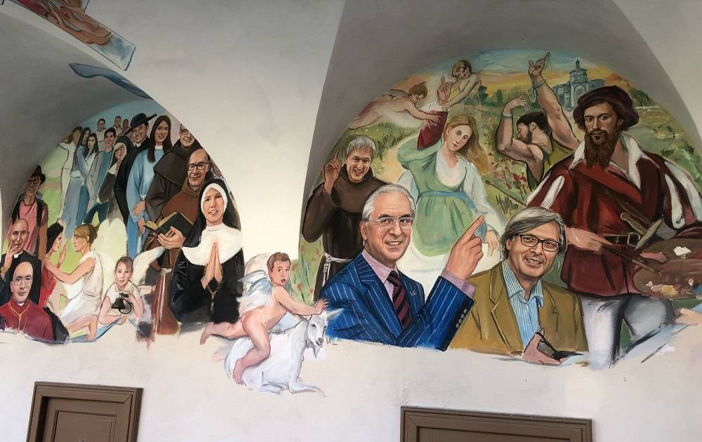 Visita fugace di Vittorio Sgarbi alla Salita al Pordenone, occasione – anche – per vedere il ritratto che gli ha fatto Cristian Pastorelli nel porticato del Convento dei frati minori di Santa Maria di Campagna. Il noto critico d’arte è raffigurato, nel murales, insieme ad altri, piacentini.