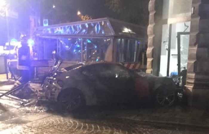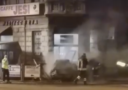 Dopo il violentissimo impatto la vettura ha preso fuoco: sul posto si sono precipitati i vigili del fuoco che hanno estinto in pochi minuti le fiamme evitando che il rogo si propagasse all’interno del bar. Anche i due giovani a bordo dell’auto sono riusciti a lasciare l’abitacolo appena in tempo: soccorsi dal 118 pare non abbiano riportato gravi ferite.