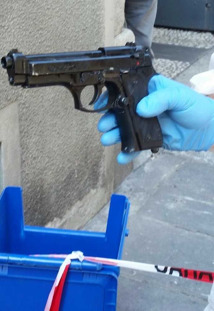 La pistola impugnata dai due individui è risultata una calibro 9: dai primi rilievi parrebbe trattarsi di una scacciacani adeguatamente modificata, ma le analisi balistiche sono tuttora in corso.