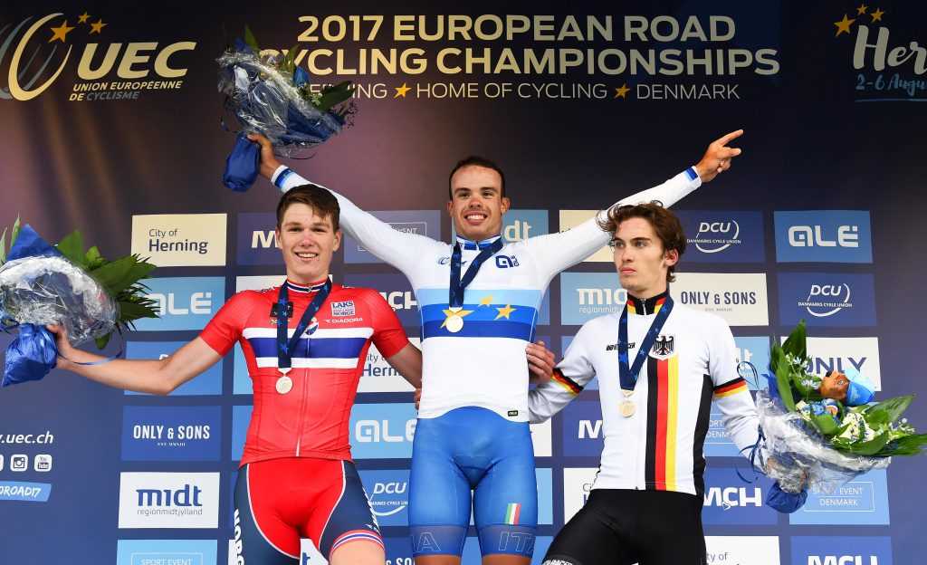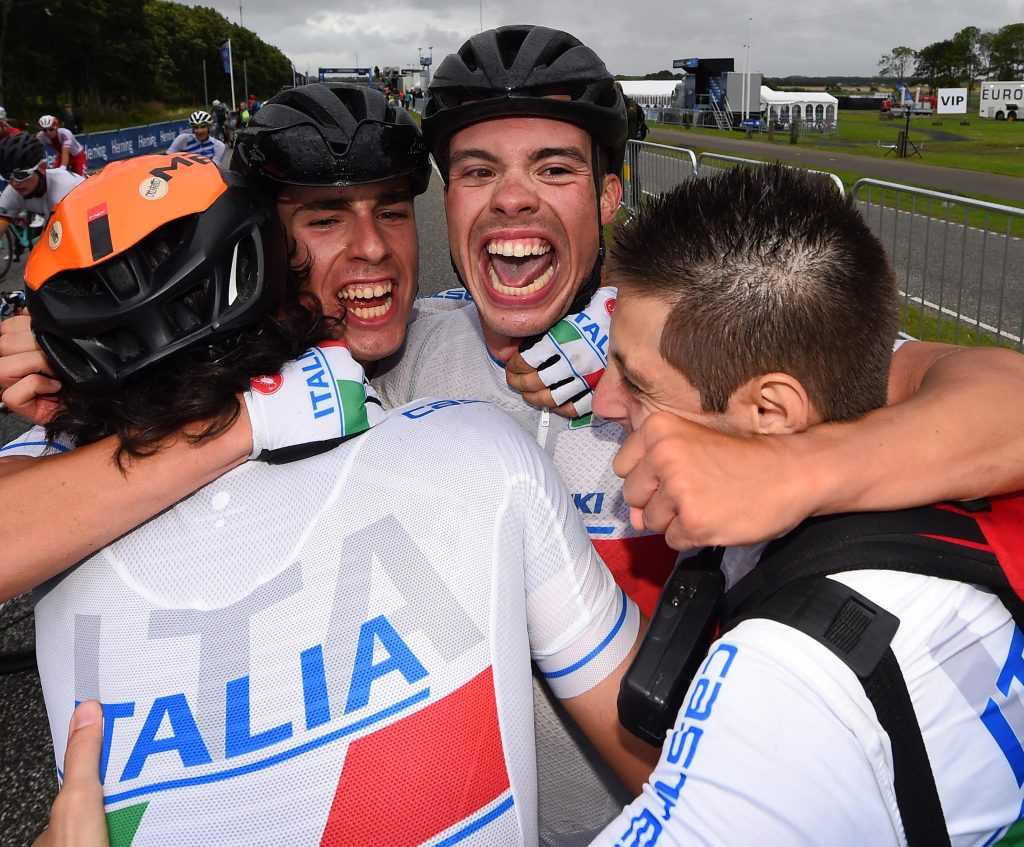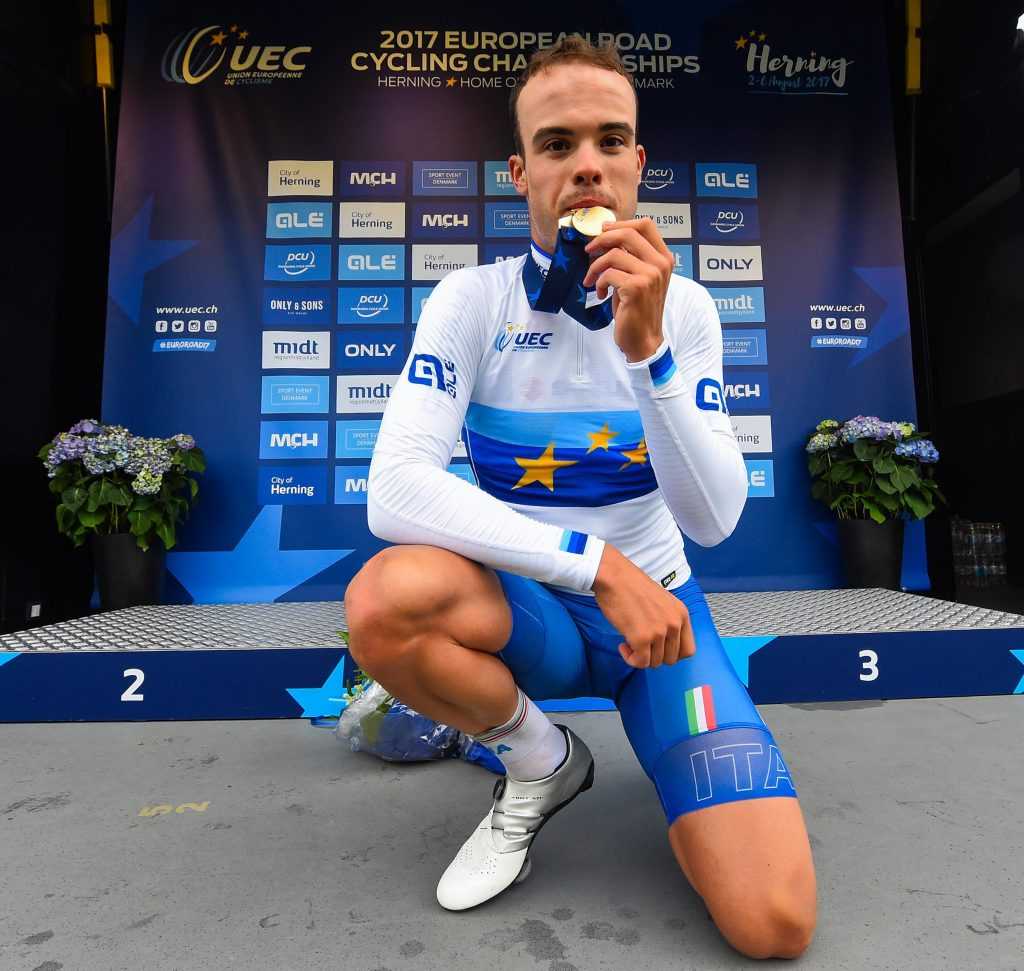 “Ringrazio – sono le sue prime parole da campione europeo – soprattutto i miei compagni di squadra, senza di loro non ce l’avrei fatta. Sono stati perfetti a chiudere su ogni fuga e a portarmi all’arrivo. Sono amici ancora prima che compagni. Il mio futuro? Punto ai Mondiali, sia strada sia pista, però ora lasciatemi godere questo giorno, il più bello della mia vita”.