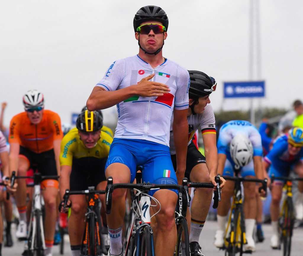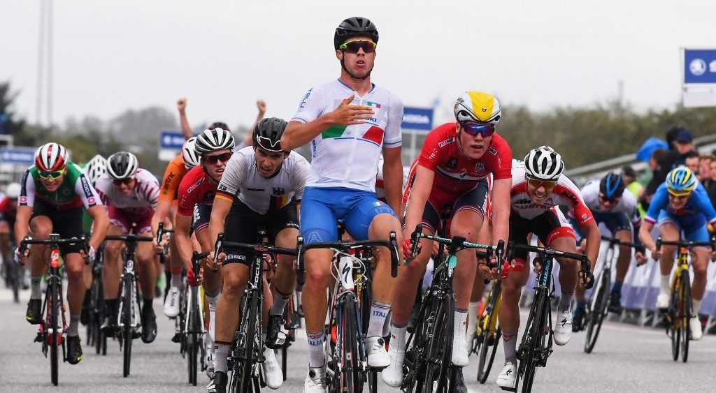 Non è stata una gara facile per i ragazzi di Rino De Candido, soprattutto quando a meno 60 chilometri dall’arrivo c’era un terzetto in fuga con quasi un minuto di vantaggio. L’Italia, però, si è assunta l’onere di chiudere, ripetendo l’operazione chirurgicamente sui seguenti tentativi, scoccati da Danimarca, Francia e Olanda. Si è arrivati in volata, dove Gazzoli non si è lasciato sfuggire l’occasione: coperto fino ai 200 metri, ha lasciato poi esplodere tutta la sua potenza, chiudendo con quasi una bicicletta di vantaggio sul norvegese Søren Wærenskjold e sul tedesco Niklas Märkl. Per il talento classe 1999 di Ospitaletto (Brescia), prosegue l’estate da favola dopo il titolo europeo in pista nell’Eliminazione e il bronzo nello Scratch di categoria ai recenti campionati continentali ad Anadia (Portogallo). In precedenza, invece, per lui la vittoria su strada al Gp Patton in Lussemburgo.