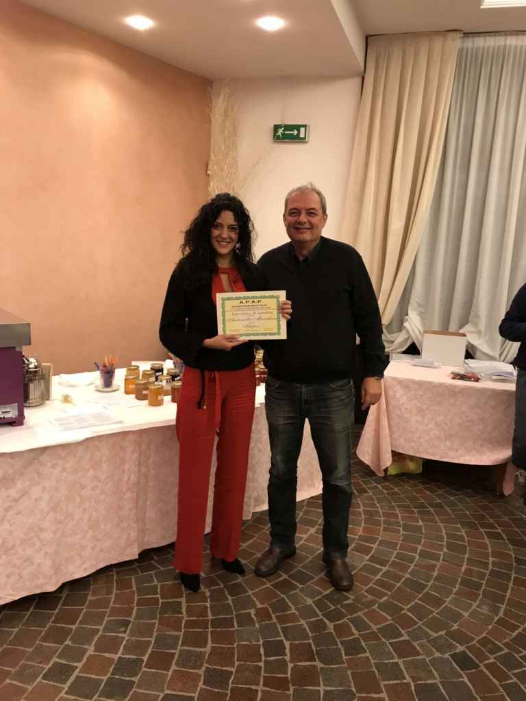 Attestato di qualità al miele millefiori di Fabio Vaccari a consegnare l’attestato la Prof.ssa Maria teresa Andena dirigente del campus agroalimentare Itas Raineri.
