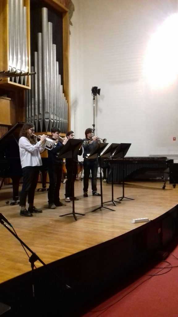 Classe di Musica d’Insieme prof.sa Garosi: Davide Bertoli (tromba) Simone Allegri (vibrafono)Giacomo Alfano(clarinetto)Diego Romani(viola)Ilaria Abruzzi(pianoforte)