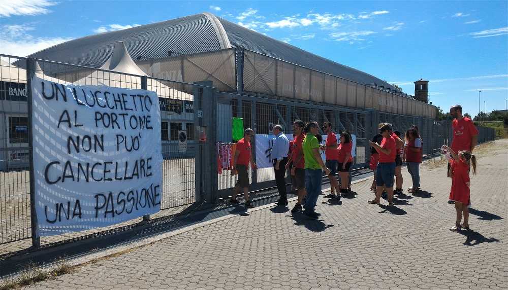 La convenzione con Dimensione Sport, gestore del Palabanca, è finita e nessuno si è presentato al bando per la gestione del palazzetto dello sport. Morale, da ieri mattina, sabato 1 luglio, la struttura è chiusa con un lucchetto e la Lpr volley rischia di non avere una sede a Piacenza dove giocare le partite casalinghe. Un’eventualità che preoccupa i tifosi che vedono nello spostamento della squadra la fine di un sogno. E’ il motivo per cui questa mattina i Lupi Biancorossi si sono presentati davanti al Palabanca per chiedere che il sindaco Patrizia Barbieri si attivi per trovare una soluzione nel più breve tempo possibile. Simbolicamente i supporter hanno attaccato lucchetti alla recinzione della struttura e le chiavi saranno consegnate come “memento” al primo cittadino. Uno con la scritta “Un lucchetto al portone non può cancellare una passione” fa da corredo alla mattinata di protesta chiamata con l’evocativo titolo #unlucchettoperilvolley.