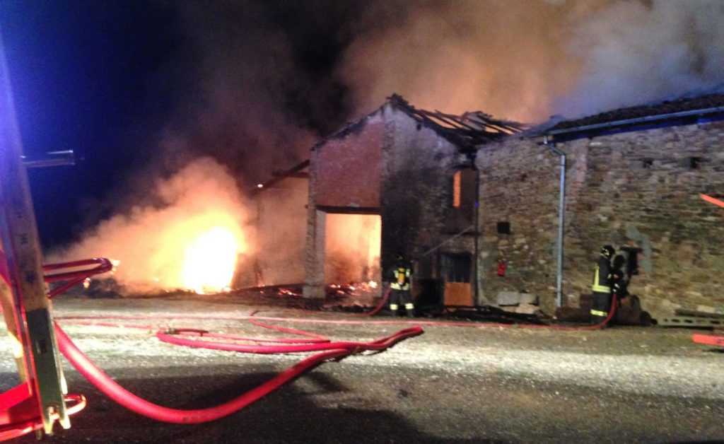 Devastante incendio in una cascina di Carmiano, frazione di Vigolzone. Le fiamme hanno iniziato a divampare intorno alle 2 di questa notte, domenica 20 agosto, da un portico all’interno del quale erano stipate decine di rotoballe di fieno.