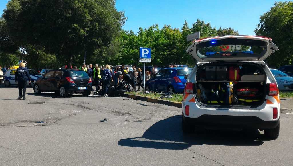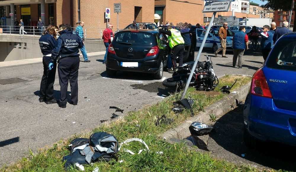 Auto contro scooter, un ferito gravissimo. I fatti sono accaduti intorno alle 11,30 di questa mattina, sabato 29 aprile, nei pressi del parcheggio retrostante il supermercato Coop di via Martiri della Resistenza. Un ragazzo di circa 20 anni stava viaggiando a bordo di uno scooter Piaggio quando, all’incrocio tra via Giovanni Pallastrelli e via Trivioli, si è schiantato contro la fiancata sinistra di una Opel Corsa condotta da una donna. L’impatto è stato violentissimo. Sul posto sono intervenuti i soccorsi del 118 con un’ambulanza, un’automedica e un’autoinfermieristica: dopo aver prestato le prime cure sul posto i sanitari hanno condotto il giovane al pronto soccorso in condizioni gravissime. Gli agenti della polizia municipale hanno prima coordinato la viabilità per poi effettuare i rilievi del caso raccogliendo le testimonianze dei presenti e della conducente della Opel, visibilmente sotto choc.