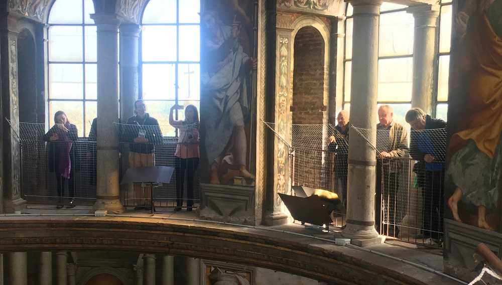 La “Salita al Pordenone” organizzata in Santa Maria di Campagna dalla Banca di Piacenza continua a raccogliere consensi entusiastici anche oltre i confini nazionali. Questa mattina, infatti, la basilica tramelliana di piazzale delle Crociate è stata visitata da venti operatori turistici provenienti da Russia, Lituania, Croazia, Francia, Germania, Ungheria e Bulgaria, che dopo aver ammirato i tesori d’arte sacra ospitati tra le navate della chiesa, hanno percorso l’antico “camminamento degli artisti” per salire ai piedi della cupola affrescata dal Pordenone.